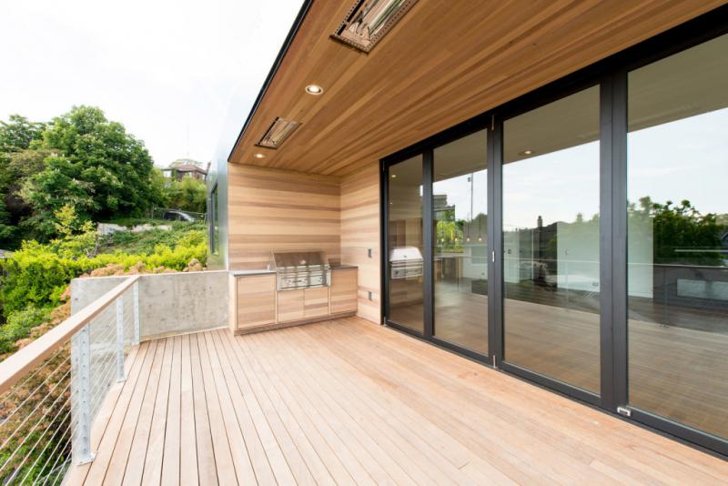 2 – Este é um bom exemplo desses painéis deslizantes de vidro. Este projeto faz com que a sala de jantar se abra para um deck do chão ao teto, permitindo a entrada ideal de luz natural e uma vista panorâmica.
